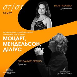 7 березня Національний заслужений академічний симфонічний оркестр України (диригент – Володимир Сіренко) презентує програму МОЦАРТ, МЕНДЕЛЬСОН, ДІЛІУС, що поєднує англійський імпресіонізм, віденську класику й німецький романтизм.